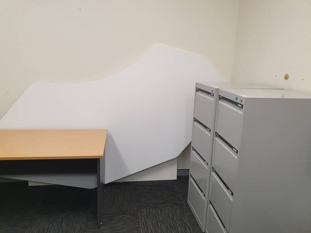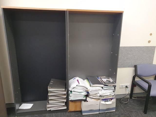 - Old and unused desks, filing cabinets and other clutter jammed into the space